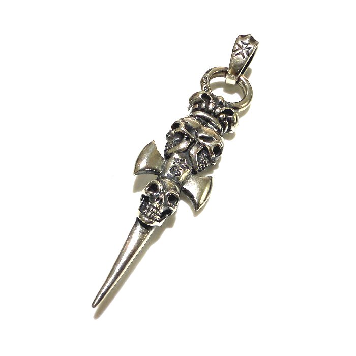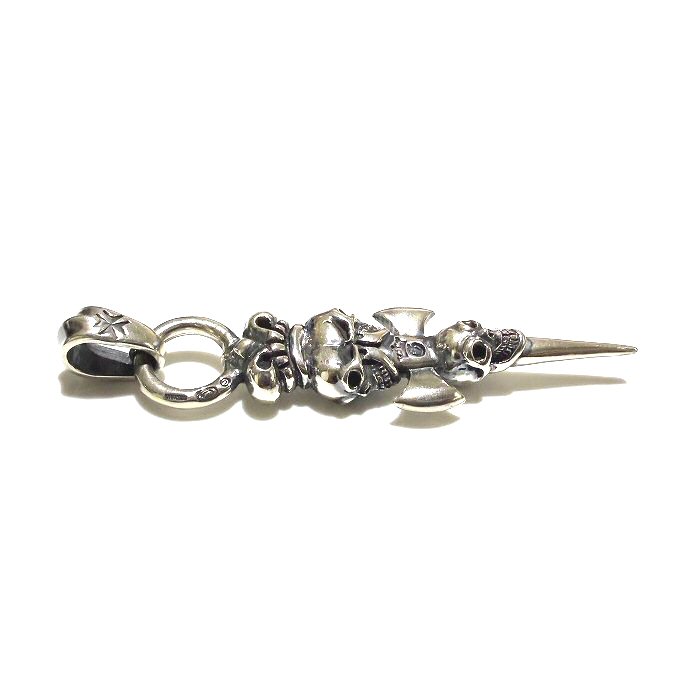 Half Triple Skull Dagger With Crown Round Bottom Pendant [P-398]
