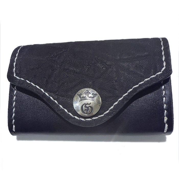 Elephant & Saddle Leather Coin Card Case (Black/Black) [CC-24]