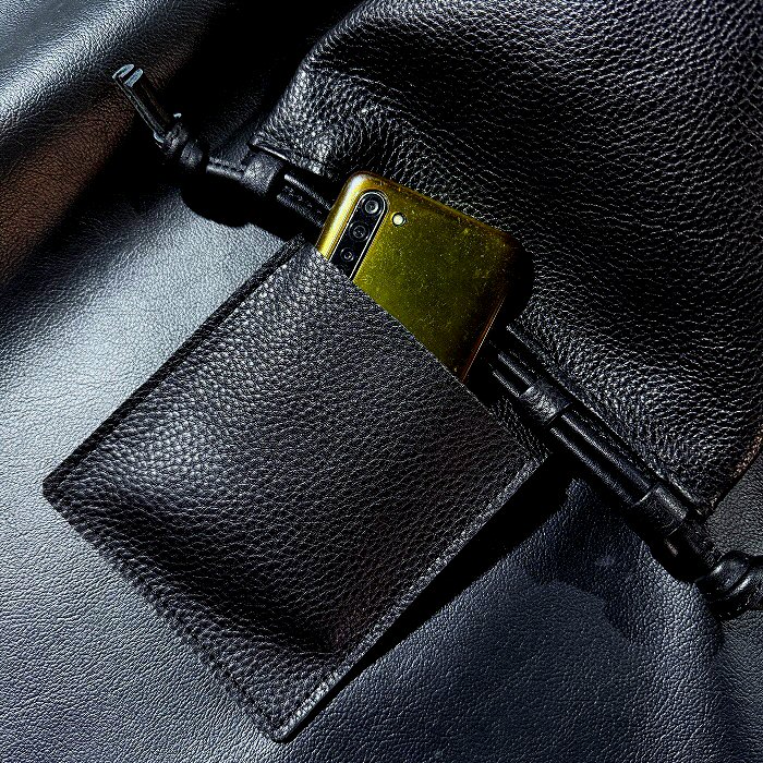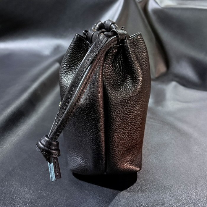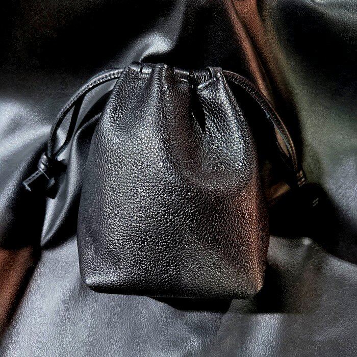 G&Crown Quarter Cross Oval With Crown Pins Buffalo Leather Drawstring Bag (S) [BA-22]