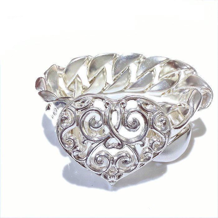 Detail: Cuban chain / Heart buckle(Platinum finish)