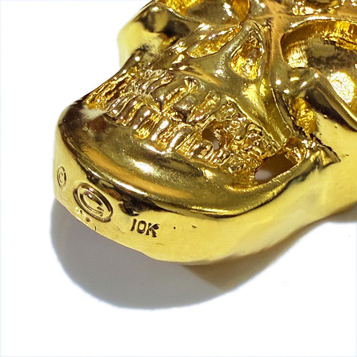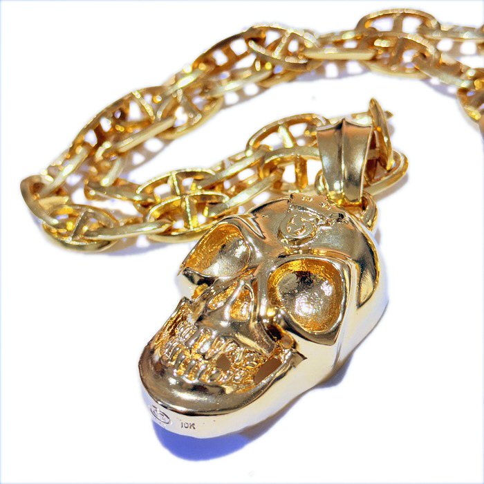 10k Gold Giant Skull With Chevron Bail Pendant [P-413]
