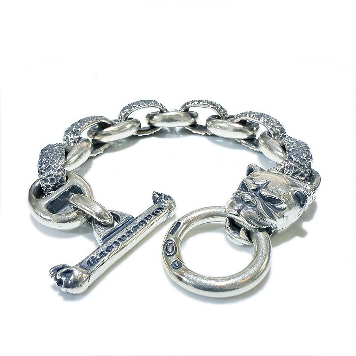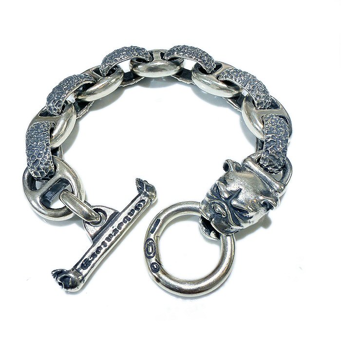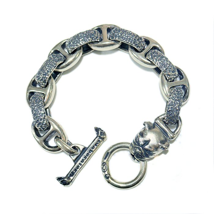 Bulldog With Chiseled H.W.O & Smooth Anchor Links Bracelet [B-350]