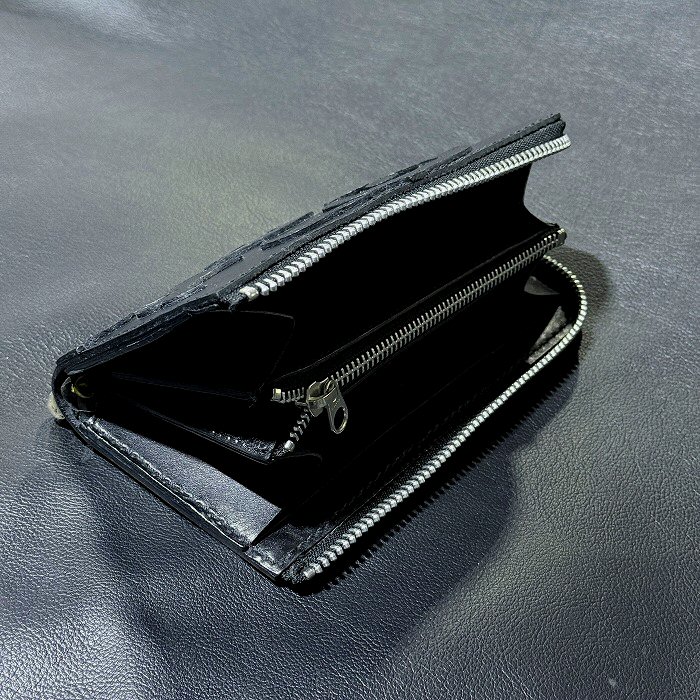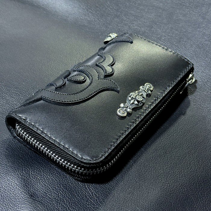 [現品限り2025年内納品OK] G&Crown Quarter Cross Oval With Crown Atelier Mark Overlay Saddle Leather J-Zipper Wallet(Slim Type・Black) [RZ-19]