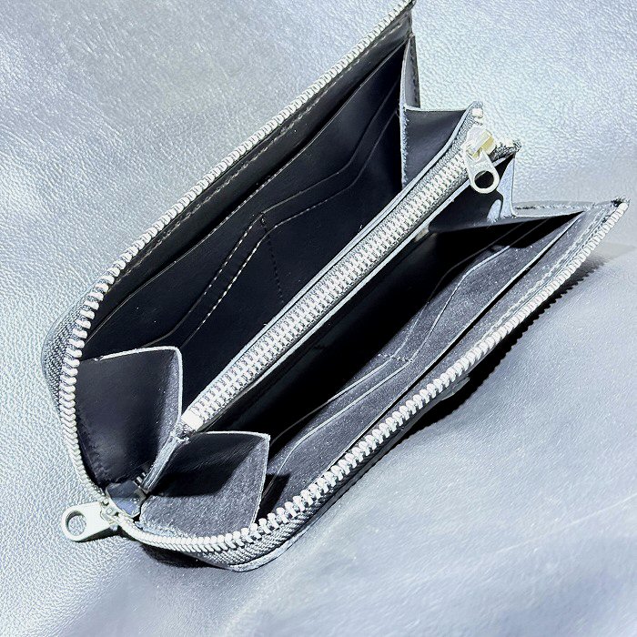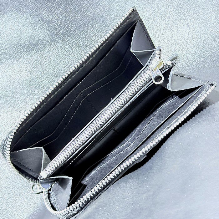 [現品限り2025年内納品OK] G&Crown Quarter Cross Oval With Crown Atelier Mark Overlay Saddle Leather J-Zipper Wallet(Slim Type・Black)
